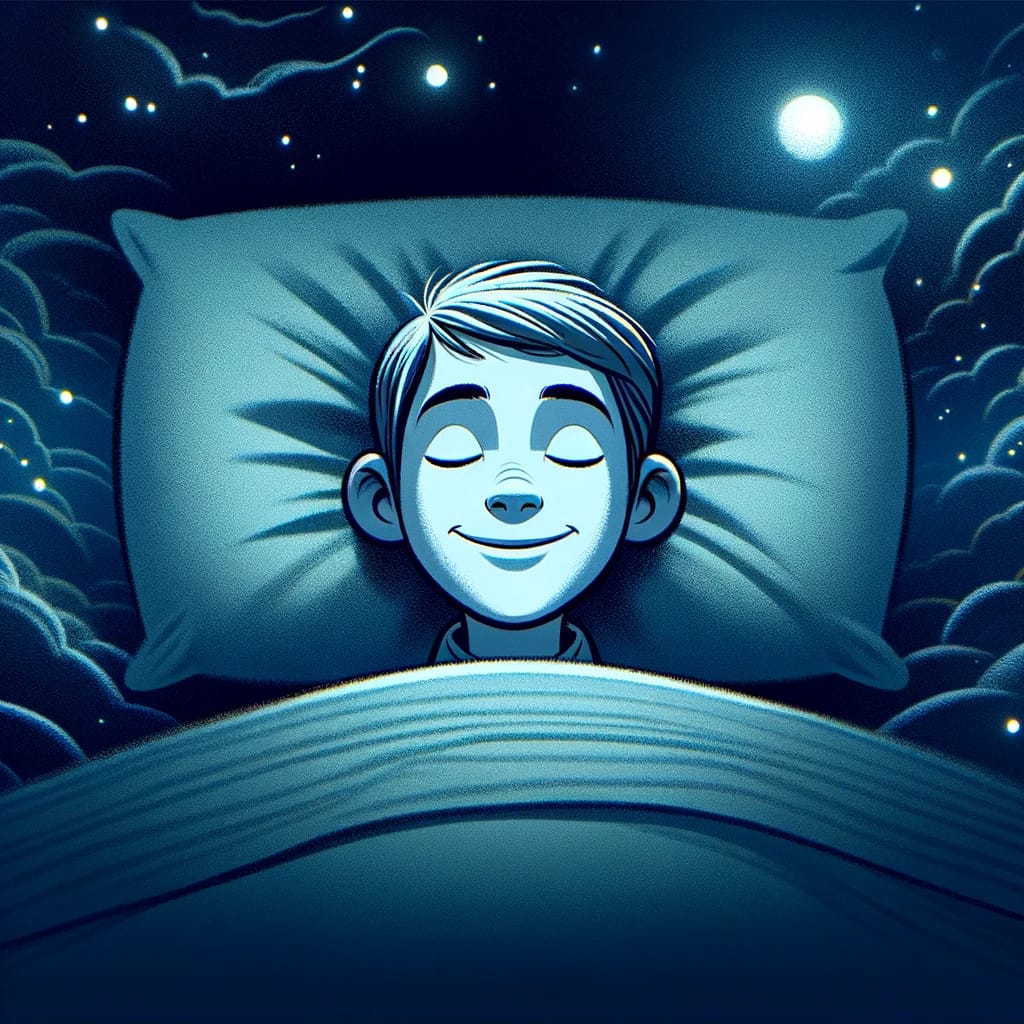 10- À la fin de l’histoire, Lucas ferme les yeux en souriant, prêt à accueillir rêves et cauchemars.