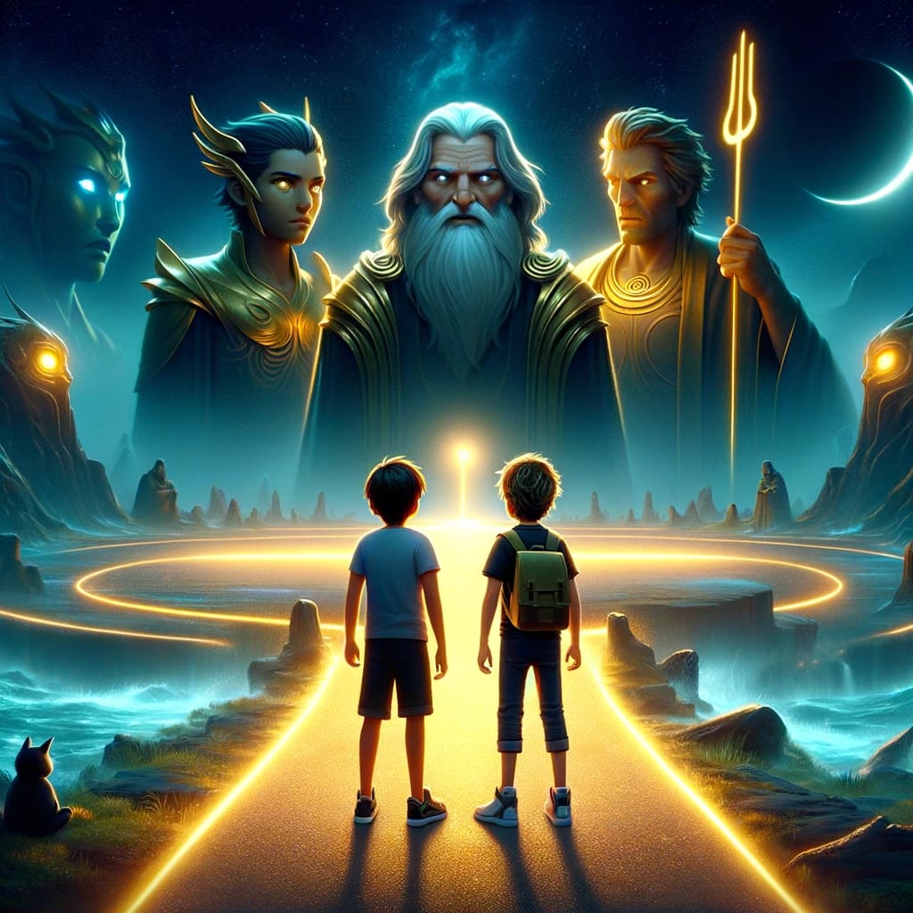 Lucas et Nox traversèrent un portail lumineux qui les mena au Royaume des Rêves. Là, ils rencontrèrent d’autres Gardiens, tous brillants et majestueux, mais avec des regards méfiants envers Nox. Les Gardiens, Sirius et Luma, les Maîtres des Gardiens des Rêves, s’approchèrent.