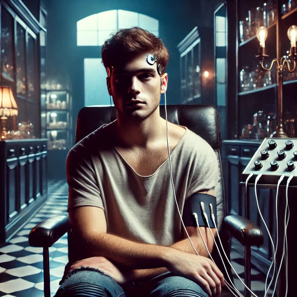 Avec un soupir, Evelyn le conduisit à l’arrière de la boutique, où une chaise inclinable l’attendait. Elle attacha des électrodes à ses tempes et lui tendit une petite [simple_tooltip content=’A small bottle, typically used for storing medicinal potions, essential oils, or other liquids, often characterized by a narrow neck.’]fiole[/simple_tooltip] de liquide scintillant. “Buvez ceci. Cela vous aidera à entrer dans le rêve.”